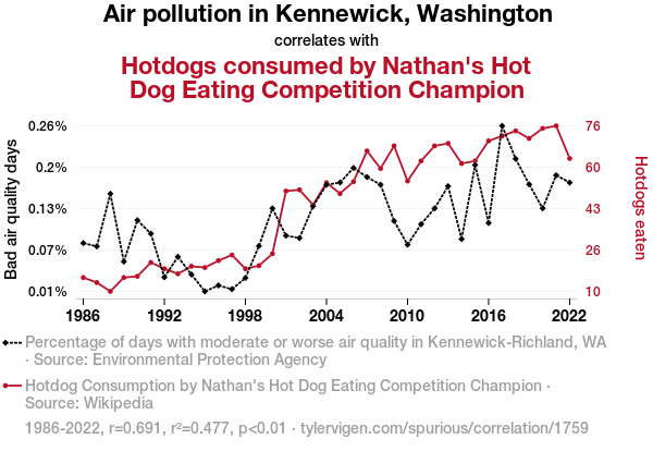 - The spurious research paper: Air Pollution in Kennewick, Affecting the Nathan's Hot Dog Champion's Pick