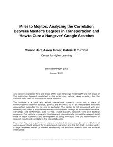 Miles to Mojitos: Analyzing the Correlation Between Master's Degrees in Transportation and 'How to Cure a Hangover' Google Searches Journal of Transportation Studies and Hangover Research Jan 2024 Reminder: This paper is AI-generated. Not real! |