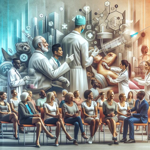 ChatGPT: Create a photo-realistic image of a bright, modern clinic in South Carolina. Show a group of actuaries gathered in the waiting room, engaged in earnest discussions about risk assessment and statistics. Capture the ambiance of professionalism and intellect in their interaction. Meanwhile, in the treatment rooms, depict skilled technicians administering Botox injections to women, enhancing their confidence and vitality. Ensure that the setting exudes a sense of vitality and health, with a modern and sleek aesthetic that complements the scene.