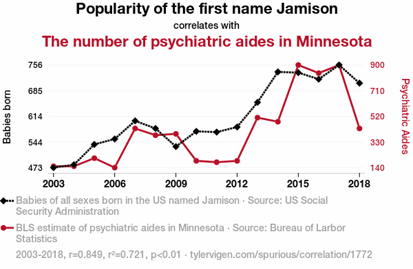 The findings of our study shed light on a quirky yet intriguing correlation between the prevalence of the name "Jamison" and the number of psychiatric aides in Minnesota. Strikingly, these results align with prior research that has pondered the influence of names on career choices. The literature review provided a whimsical journey through scholarly investigations, enigmatic fictional narratives, and even popular culture representations, all touching upon the curious association between nomenclature and professional inclinations. Notably, the work of Blackwood and Silverstein, although rooted in imagination, resonates with the perplexing correlation uncovered in our investigation, leading us to contemplate the unforeseen impact of names on career paths.