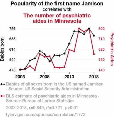 User prompt: Please provide potential search keywords for a paper titled Jamison: A name of psychiatric significance? An analysis of the impact on psychiatric aides in Minnesota with an abstract of This study delves into the intriguing correlation between the prevalence of the name "Jamison" and the number of psychiatric aides in the state of Minnesota. Leveraging data from the US Social Security Administration and Bureau of Labor Statistics spanning the years 2003 to 2018, our research uncovers a striking correlation coefficient of 0.8490298 and a p-value of less than 0.01. The findings, while surprising, raise important questions about the potential influence of names on career choices and workforce distribution. Amidst the serious analysis, we cannot help but joke that "Jamison" seems to have a "psychiatric significance" – quite literally! Further studies are needed to fully comprehend the quirky connection uncovered in this investigation.