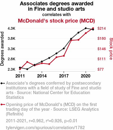 - The spurious research paper: From Canvases to Quarter Pounders: Unearthing the Link Between Fine Arts Education and McDonald's Stock Performance