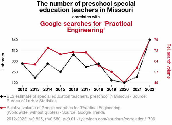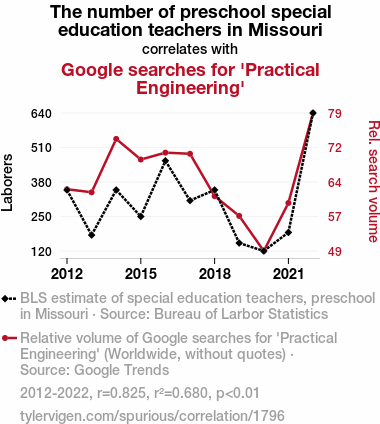 Missouri, preschool special education teachers, Google searches, Practical Engineering, correlation coefficient, Bureau of Labor Statistics, Google Trends, statistical bond, data analysis, digital universe, research findings