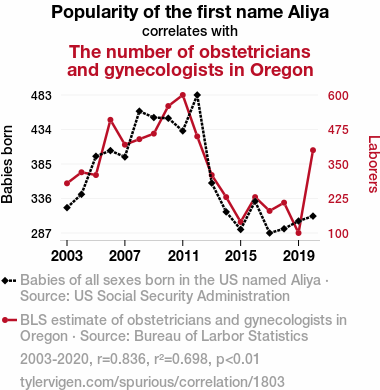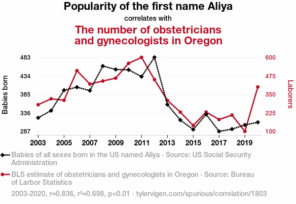 Aliya, obstetricians, gynecologists, name popularity, physician numbers, Oregon, correlation, statistical analysis, US Social Security Administration, Bureau of Labor Statistics, healthcare professionals, latent force, childbirth, medical practitioners, unexpected correlations
