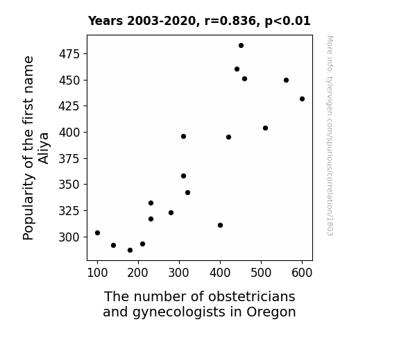 The findings demonstrated that as the popularity of the name Aliya increased over the years from 2003 to 2020, there was a corresponding rise in the number of obstetricians and gynecologists in the state of Oregon. It's almost as if the resonance of the name Aliya had a magnetic pull for healthcare professionals specializing in women's health. This unexpected connection prompts us to ask, "Could it be that the name Aliya acts as a beacon, attracting these medical guardians of birth and well-being?"