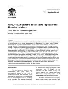 User prompt: Please provide potential search keywords for a paper titled AliyaGYN: An Obstetric Tale of Name Popularity and Physician Numbers with an abstract of In this study, we delved into an obstetric wonderland to explore the relationship between the popularity of the first name Aliya and the number of obstetricians and gynecologists in the state of Oregon. Drawing data from the US Social Security Administration and the Bureau of Labor Statistics, we executed a thorough statistical analysis to uncover any potential correlations between these seemingly unrelated variables.