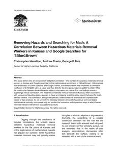 Removing Hazards and Searching for Math: A Correlation Between Hazardous Materials Removal Workers in Kansas and Google Searches for '3Blue1Brown' The Journal of Occupational Hazard Research Jan 2024 Reminder: This paper is AI-generated. Not real! |