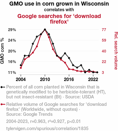 GMO corn, Wisconsin agriculture, genetically modified organisms, internet search patterns, Google search behavior, correlation, agricultural biotechnology, online behavior, biochemical engineering, digital curiosity, internet navigation, GMO cultivation, Wisconsin corn fields, 'download firefox' search, GMO corn growth, internet search correlation