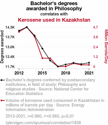 - The spurious research paper: The Enlightenment Effect: Illuminating the Relationship Between Philosophy and Religious Studies Degrees and Kerosene Consumption in Kazakhstan