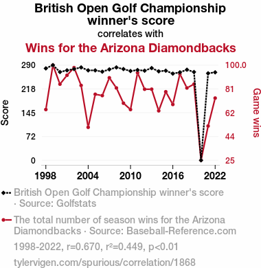 - The spurious research paper: Swing and Hit: A Tee-rific Connection Between British Open Golf Championship Scores and Arizona Diamondbacks' Wins