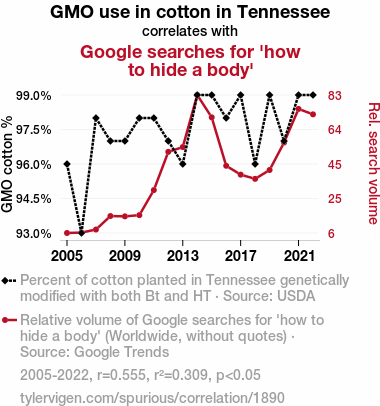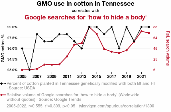 - The spurious research paper: Cotton Math: GMOs and Google Searches for 'How to Hide a Body' in Tennessee