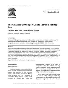 Please draft the title and abstract of an academic research paper presenting the findings of the connection between UFO sightings in Arkansas and Hotdogs consumed by Nathan's Hot Dog Eating Competition Champion. Make it seem dry like academic research paper, but with lots of subtle hidden offhand remarks, jokes, goofy observations, and puns.