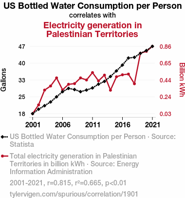 - The spurious research paper: From Currents to Current: Exploring the Shocking Relationship Between Bottled Water Consumption and Electricity Generation