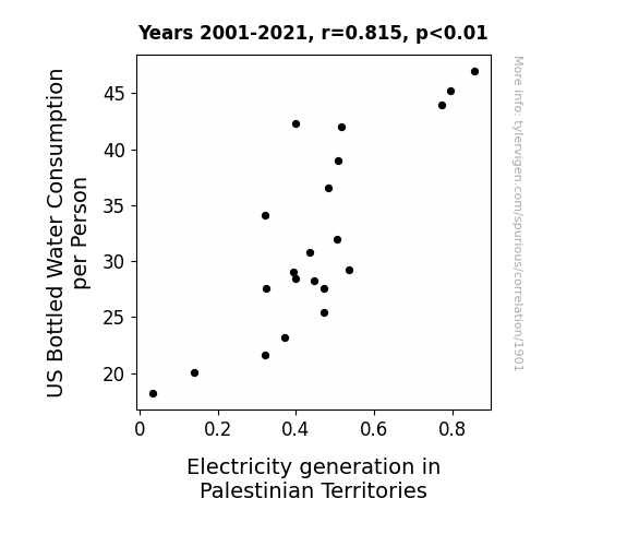 In this paper, we present our findings on the peculiar correlation between US bottled water consumption per person and electricity generation in Palestinian Territories. Our data analysis journey takes us through the currents of statistical significance, the shock of unexpected correlations, and the electrifying implications of our discoveries.