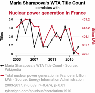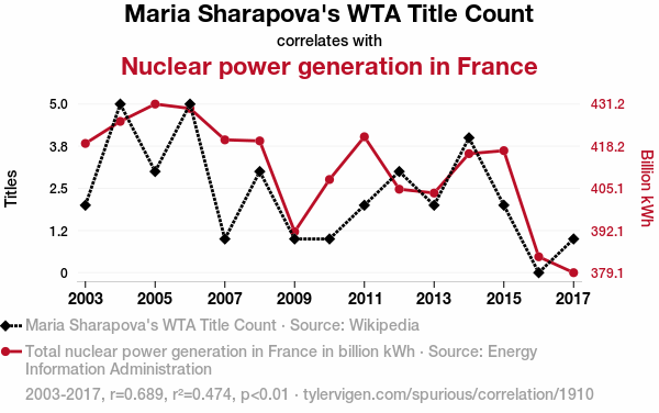 Maria Sharapova, Sharapova Effect, WTA Title Count, nuclear power generation, France, correlation, data analysis, unconventional correlations, scientific amusement