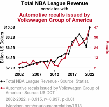 - The spurious research paper: Revving Up Revenue: The Slam Dunk Connection Between Total NBA League Revenue and Volkswagen Group of America's Automotive Recalls