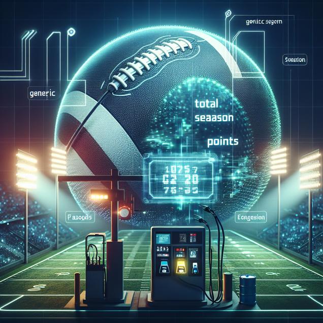 Prompt: Generate an image showing a football field with the New England Patriots' logo at midfield, illuminated by a futuristic, high-tech lighting system. Radiating an aura of advanced technology, the field displays the total points scored in the season as an ever-changing holographic projection. Adjacent to the field, a sleek gas station in the British Virgin Islands is depicted, with a cutting-edge fuel pump displaying the amount of gasoline pumped in a digital readout. The scene is infused with a high-tech aesthetic, blending the traditional elements of sports with the modernity of technology. The depiction should include only scenes, people, and objects, it should not include text or speech bubbles.