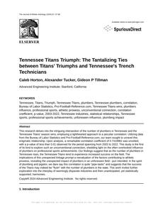 User prompt: Please provide potential search keywords for a paper titled Tennessee Titans Triumph: The Tantalizing Ties between Titans' Triumphs and Tennessee's Trench Technicians with an abstract of This research delves into the intriguing intersection of the number of plumbers in Tennessee and the Tennessee Titans' season wins, employing a lighthearted approach to a peculiar correlation. Utilizing data from the Bureau of Labor Statistics and Pro-Football-Reference.com, our team sought to unravel this enigmatic relationship. Upon analysis, a remarkable correlation coefficient of 0.7419981 was unveiled, with a p-value of less than 0.01 observed for the period spanning from 2003 to 2022.