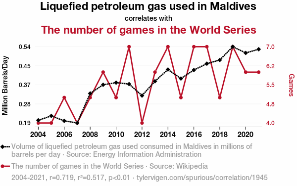 Here’s the twist – this correlation isn’t just a statistical blip. No, it's sturdy enough to make even the most seasoned baseball analyst do a double-take. Picture this: like the synchronized movements of a well-practiced dance duo, LPG consumption in the serene Maldives seems to be foxtrotting in perfect harmony with the merry jig of the World Series games. It’s like watching the unexpected plot twists of a baseball game unfold with the same anticipation as waiting for water to boil on a propane-fueled stove.