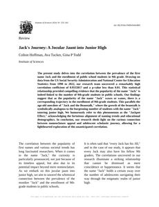 User prompt: Please provide potential search keywords for a paper titled Jack's Journey: A Jocular Jaunt into Junior High with an abstract of The present study delves into the correlation between the prevalence of the first name Jack and the enrollment of public school students in 9th grade. Drawing on data from the US Social Security Administration and National Center for Education Statistics from 1990 to 2022, our research team uncovered a remarkably high correlation coefficient of 0.9555817 and a p-value less than 0.01. This statistical relationship provided compelling evidence that the popularity of the name "Jack" is indeed linked to the number of 9th-grade students in public schools.
