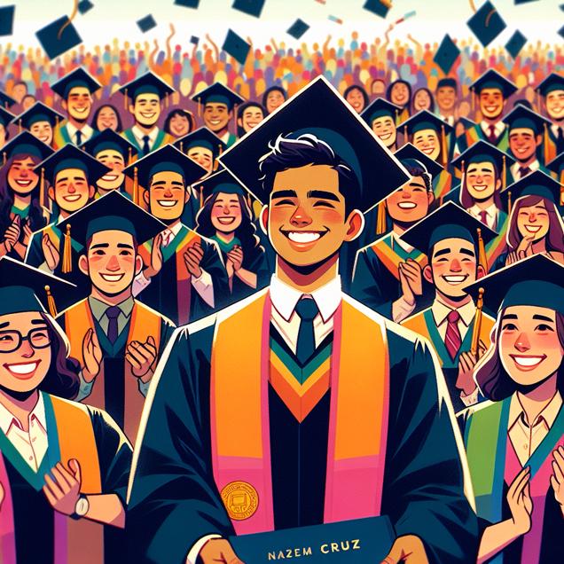 ChatGPT: In the scene, there is a crowded graduation ceremony where many individuals are receiving their associates degrees in transportation and materials moving. Among the graduates, there is a prominent figure named Cruz who is surrounded by a group of cheering friends and family, showing the popularity of the first name Cruz in this particular field of study.