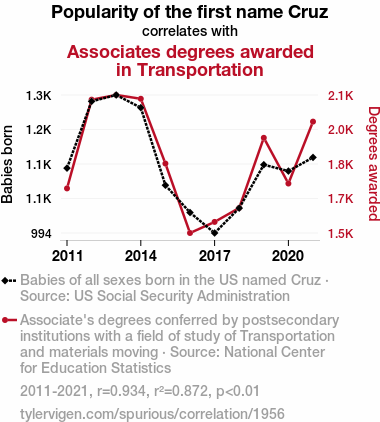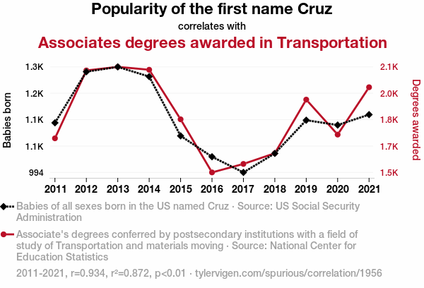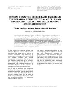 - The spurious research paper: Cruzin' down the Degree Path: Exploring the Relation between the Name Cruz and Transportation and Materials Moving Associate Degrees