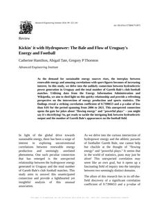 User prompt: Please provide potential search keywords for a paper titled Kickin' it with Hydropower: The Bale and Flow of Uruguay's Energy and Football with an abstract of As the demand for sustainable energy sources rises, the interplay between renewable energy and amusing correlations with sport figures becomes of increasing interest. In this study, we delve into the unlikely connection between hydroelectric power generation in Uruguay and the total number of Gareth Bale's club football matches. Utilizing data from the Energy Information Administration and Wikipedia, we aim to shed light on this quirky relationship and provide a refreshing perspective on the intersection of energy production and sports statistics.