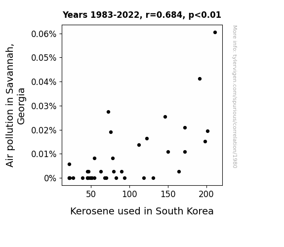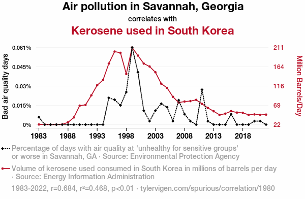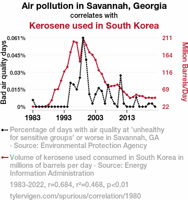 - The spurious research paper: Kerosene in Seoul Sends Savannah's Air South: A Correlative Analysis of Air Pollution in Georgia and Kerosene Consumption in South Korea