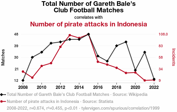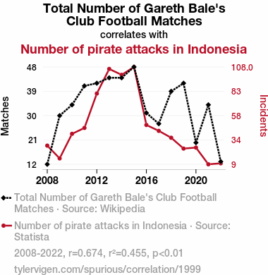 - The spurious research paper: Bale Out: Exploring the Correlation Between Gareth Bale's Football Matches and Pirate Attacks in Indonesia