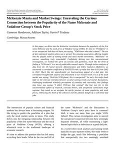 McKenzie Mania and Market Swings: Unraveling the Curious Connection between the Popularity of the Name Mckenzie and Vodafone Group's Stock Price The Journal of Quirky Connections in Economics and Sociology Jan 2024 Reminder: This paper is AI-generated. Not real! |