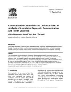 Communicative Credentials and Curious Clicks: An Analysis of Associates Degrees in Communication and Reddit Searches The Journal of Communication Credentials Research Jan 2024 Reminder: This paper is AI-generated. Not real! |