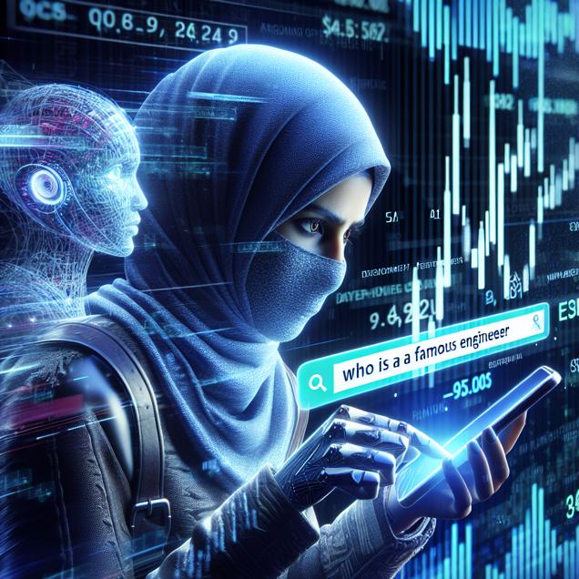Prompt: Generate an image of a cyber folk scene where a figure is seen in the foreground, interacting with a smartphone displaying the Google search bar as they type "who is Elon Musk" into it. The person is engrossed in their search, with a curious and focused expression on their face. Meanwhile, in the background, a sleek digital screen is visible, displaying the fluctuating stock price of ASML Holding in real-time. The graph and numbers on the screen are dynamic, reflecting the constant changes in stock prices. The entire composition should convey a sense of modern digital interaction and the integration of technology with everyday life. The depiction should include only scenes, people, and objects, it should not include text or speech bubbles.