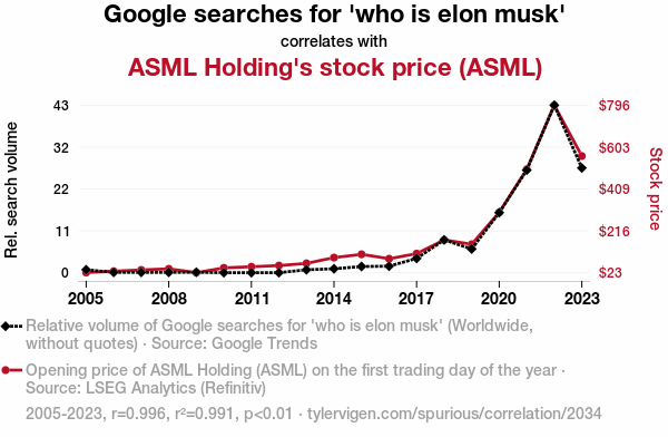- The spurious research paper: Googling Elon Musk and ASML's Stock Rush: A Novel Correlation Crush
