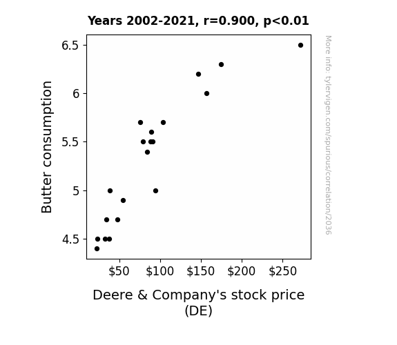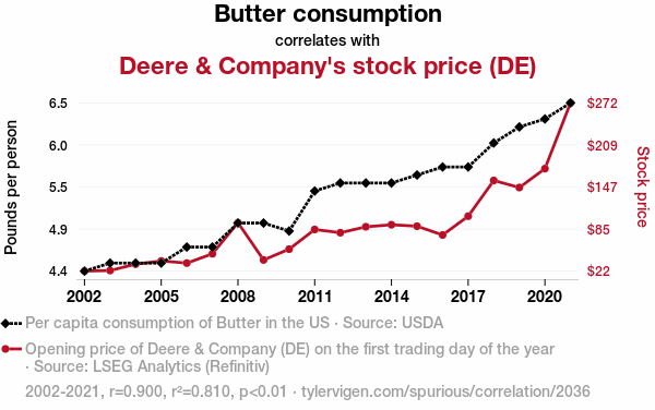 - The spurious research paper: Butter and Deere & Company: Buttering Up Stock Prices