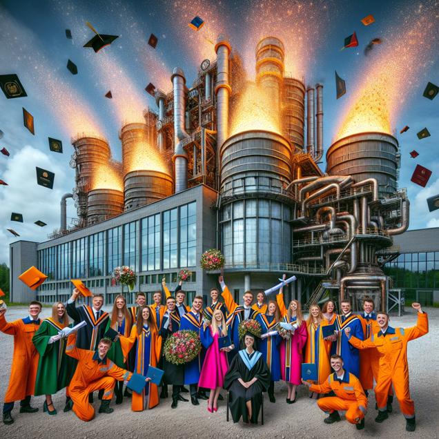 ChatGPT: In a university lab in Latvia, a group of graduates proudly display their Bachelor's degrees in Physical Sciences and Science Technologies. They stand next to a biomass power plant, where workers are busy feeding wood chips into the furnaces to generate renewable energy. The graduates smile as they observe the sustainable energy production that aligns with their scientific expertise.