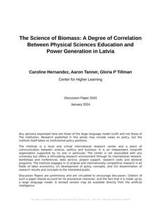 The "Science of Biomass: A Degree of Correlation Between Physical Sciences Education and Power Generation in Latvia"