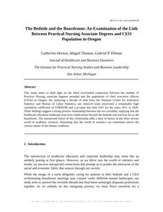 The Bedside and the Boardroom: An Examination of the Link Between Practical Nursing Associate Degrees and CEO Population in Oregon Journal of Healthcare and Business Dynamics Jan 2024 Reminder: This paper is AI-generated. Not real! |