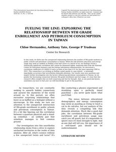 User prompt: Please provide potential search keywords for a paper titled Fueling the Line: Exploring the Relationship Between 9th Grade Enrollment and Petroleum Consumption in Taiwan with an abstract of In this study, we delve into the unexpected relationship between the number of 9th-grade students in public schools and petroleum consumption in Taiwan. While the link between education and energy usage may seem as unlikely as finding a four-leaf clover in a barrel of oil, our findings reveal a statistically significant correlation that cannot be dismissed lightly.