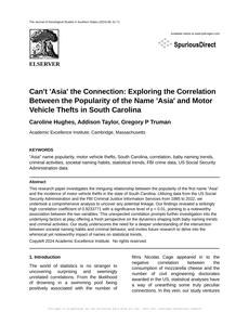 Can't 'Asia' the Connection: Exploring the Correlation Between the Popularity of the Name 'Asia' and Motor Vehicle Thefts in South Carolina The Journal of Sociological Studies in Southern States Jan 2024 Reminder: This paper is AI-generated. Not real! |
