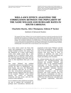 Will-i-Am's Effect: Analyzing the Correlation Between the Popularity of the Name William and Burglary Rates in South Carolina The Journal of Quirky Sociological Studies Jan 2024 Reminder: This paper is AI-generated. Not real! |