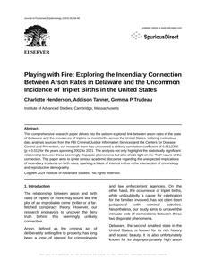 Playing with Fire: Exploring the Incendiary Connection Between Arson Rates in Delaware and the Uncommon Incidence of Triplet Births in the United States Journal of Pyrokinetic Epidemiology Jan 2024 Reminder: This paper is AI-generated. Not real! |