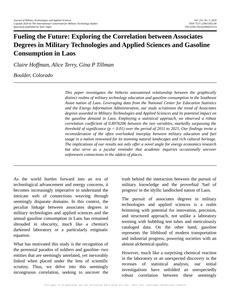 Associates Degrees, Military Technologies, Applied Sciences, Gasoline Consumption, Laos, National Center for Education Statistics, Energy Information Administration, Statistical Analysis, Correlation Coefficient, Fuel Usage, Energy Economics Research, Southeast Asia