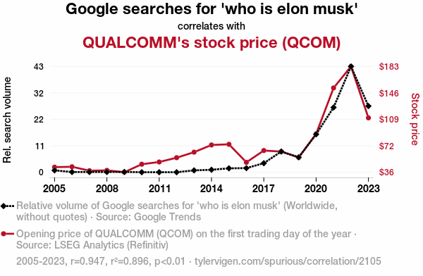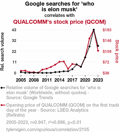 - The spurious research paper: The Musk of Google Searches: A Quantitative Analysis of Elon Musk’s Impact on QUALCOMM's Stock Price