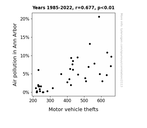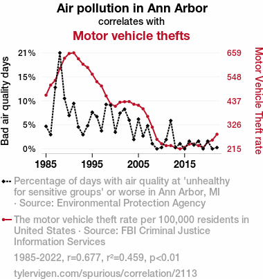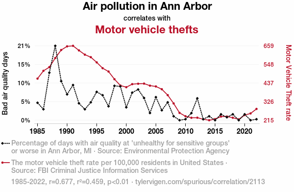 - The spurious research paper: Choking on Fumes: The Relationship Between Air Pollution and Motor Vehicle Thefts in Ann Arbor