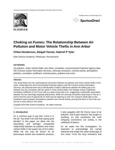 Choking on Fumes: The Relationship Between Air Pollution and Motor Vehicle Thefts in Ann Arbor Journal of Environmental Criminology and Atmospheric Chemistry Jan 2024 Reminder: This paper is AI-generated. Not real! |
