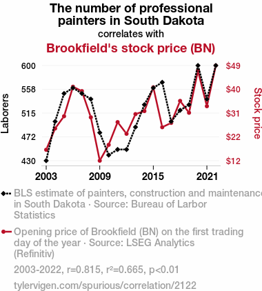 - The spurious research paper: Painters and Prices: Probing the Peculiar Relationship between Professional Painters in South Dakota and Brookfield's Stock Price