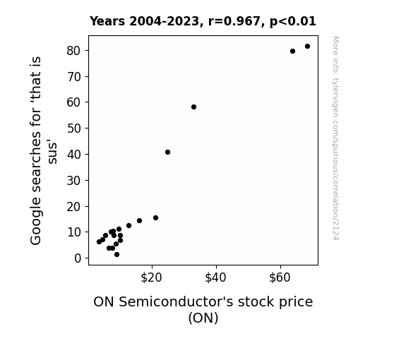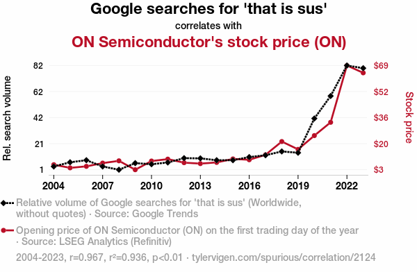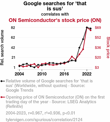 This study explores the peculiar correlation between Google searches for the phrase "that is sus" and the stock price of ON Semiconductor (ON). Leveraging Google Trends data and LSEG Analytics (Refinitiv), we meticulously analyze the relationship between these seemingly unrelated phenomena. Surprisingly, our analysis reveals a remarkably high correlation coefficient of 0.9673955 and a significance level of p < 0.01 for the period spanning 2004 to 2023. Our findings suggest that, contrary to common intuition, internet jargon may offer valuable insights into stock price movements. This research sheds light on the intriguing interconnectedness of online vernacular and financial markets, opening the door to a new realm of "sus"-tainable investment strategies.