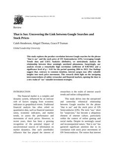 That is Sus: Uncovering the Link between Google Searches and Stock Prices The Journal of Cybernetic Finance and Information Technology Jan 2024 Reminder: This paper is AI-generated. Not real! |
