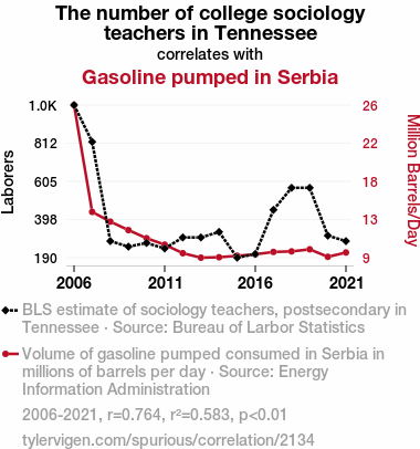 - The spurious research paper: The Sociology of Gasoline: A Correlational Analysis of College Sociology Teachers in Tennessee and Gasoline Pumped in Serbia