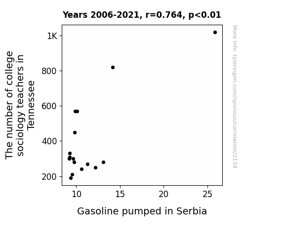 sociology, gasoline, college sociology teachers, Tennessee, Serbia, correlational analysis, Bureau of Labor Statistics, Energy Information Administration, correlation coefficient, p-value, sociological implications, replication, validation